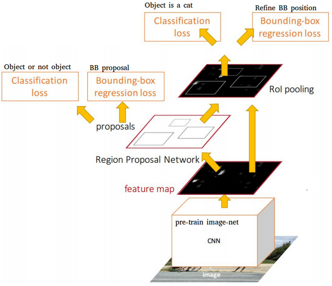 The main idea of this approach is to use neural network to predict ROIs - so-called Region Proposal Network. Paper, 2016