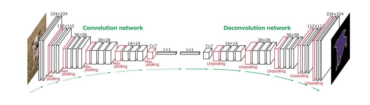 - Decoder transforms those features into the mask image, with the same size and number of channels corresponding to the number of classes.